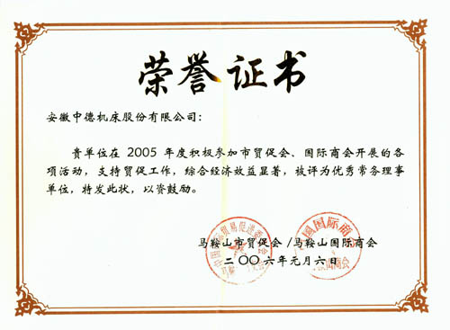 我公司獲2005年度市貿(mào)促會(huì)、國際商會(huì)優(yōu)秀常務(wù)理事單位